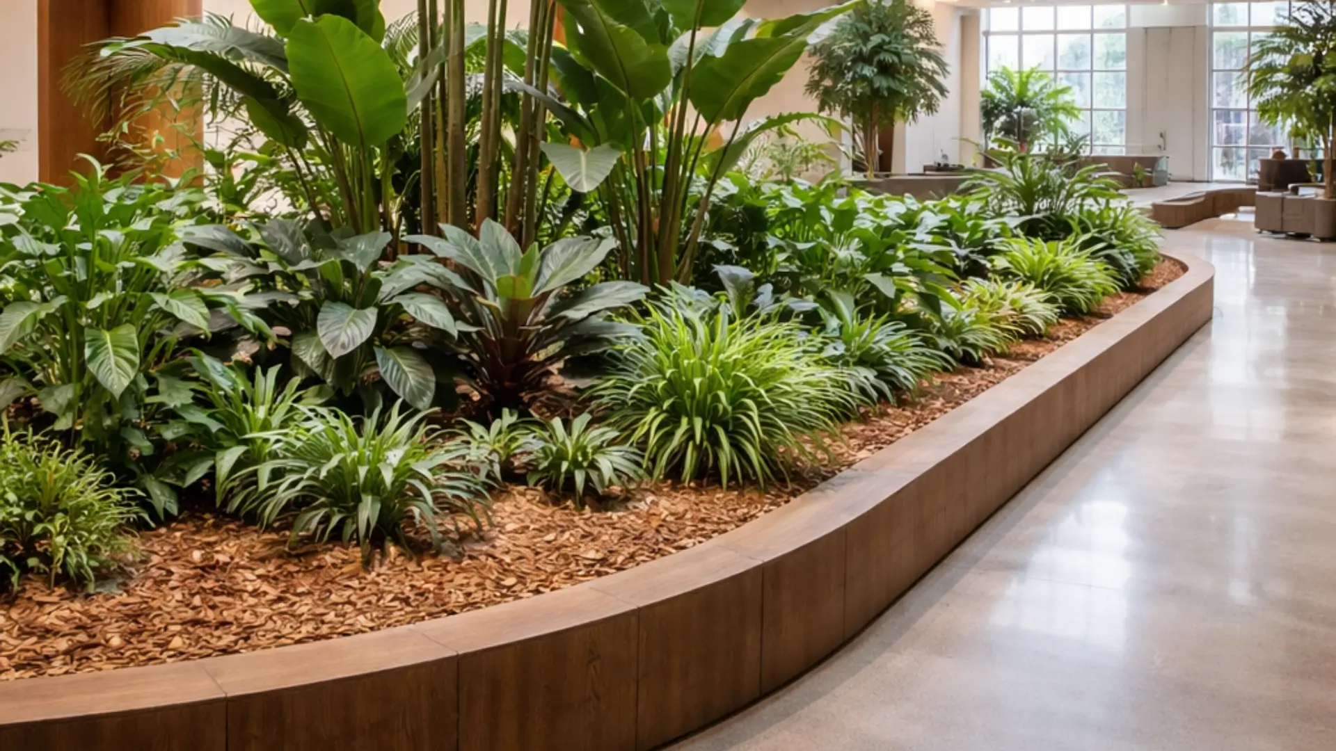Interior Mulch Scapes interior mulch is used in a wide range of interior landscaping environments where aesthetics and durability matter.