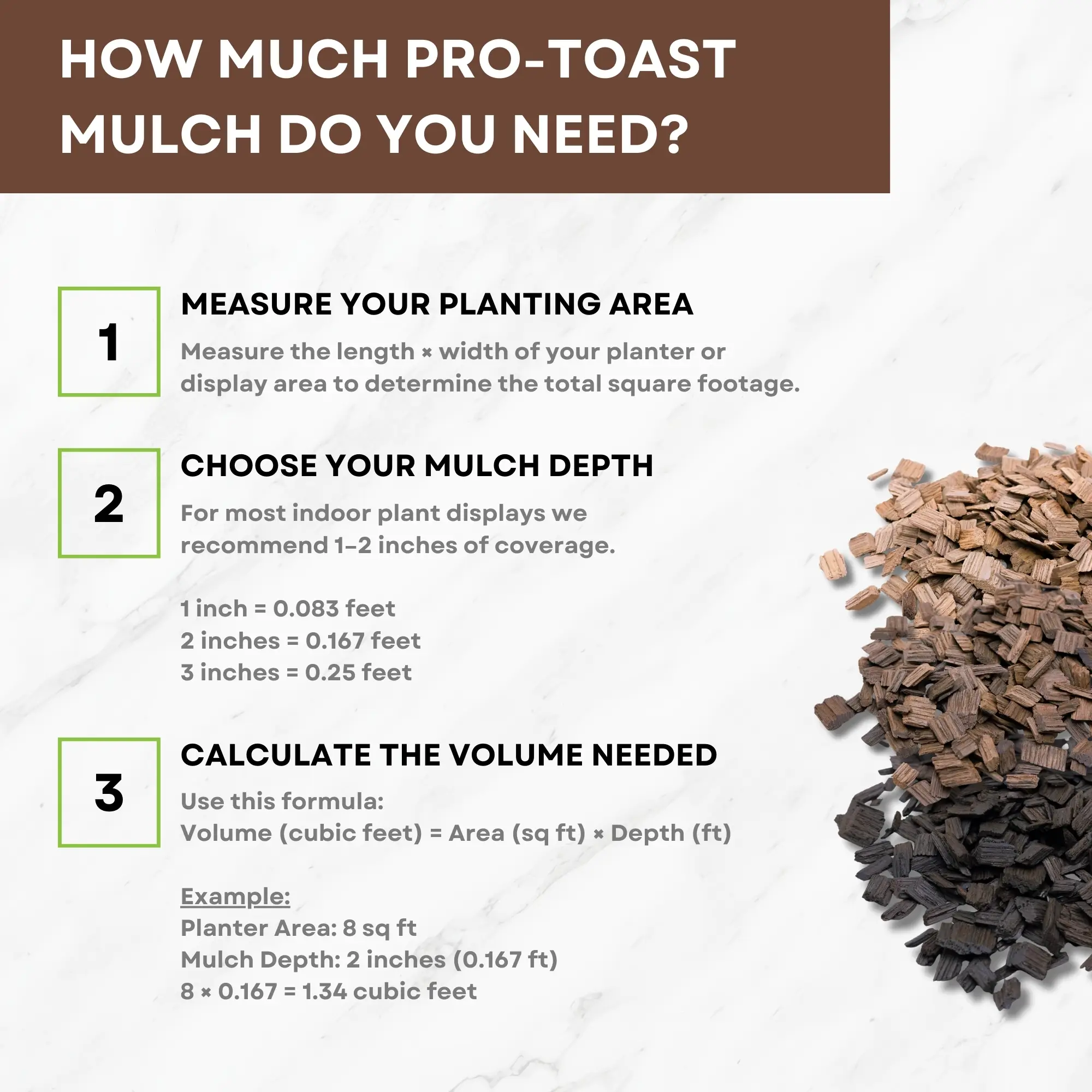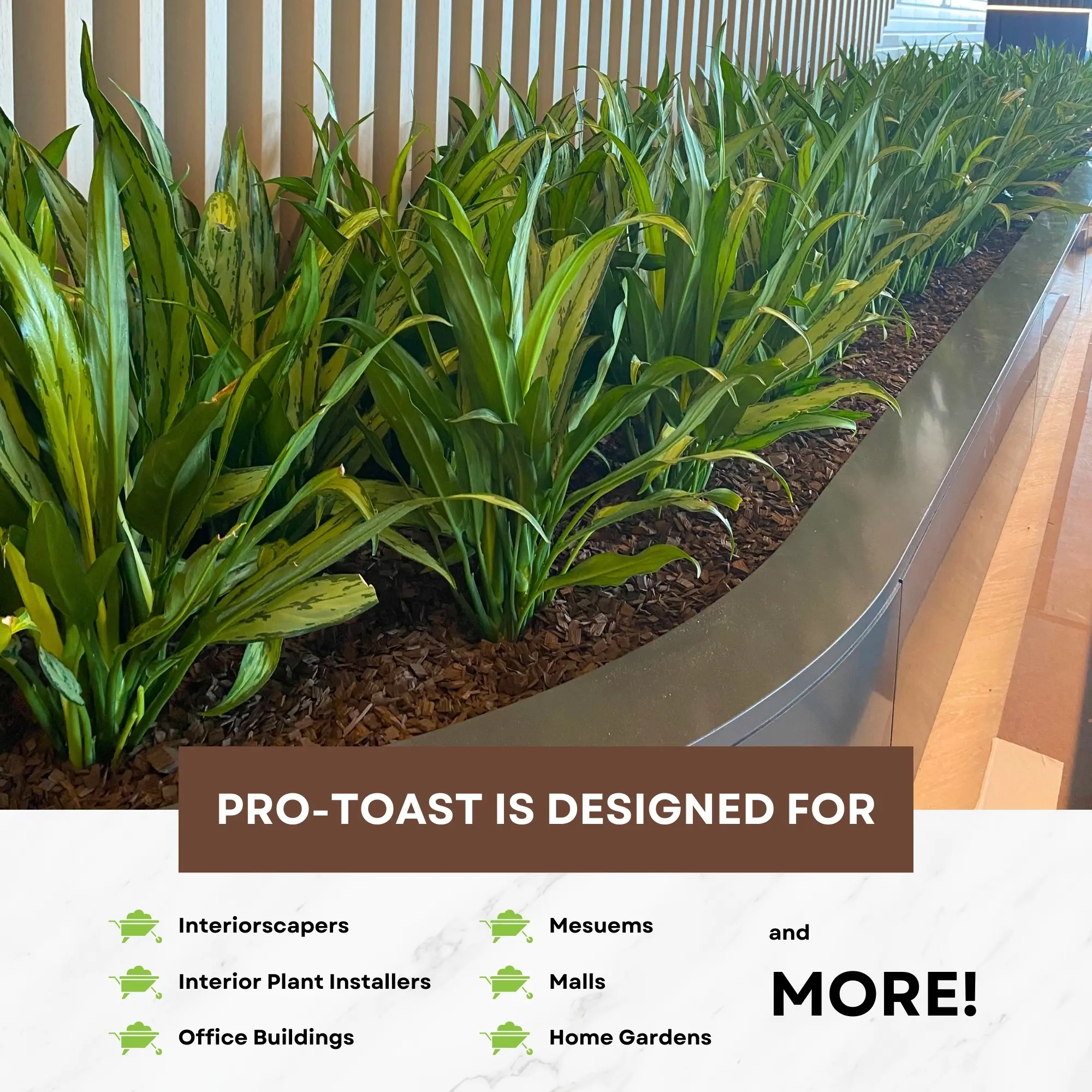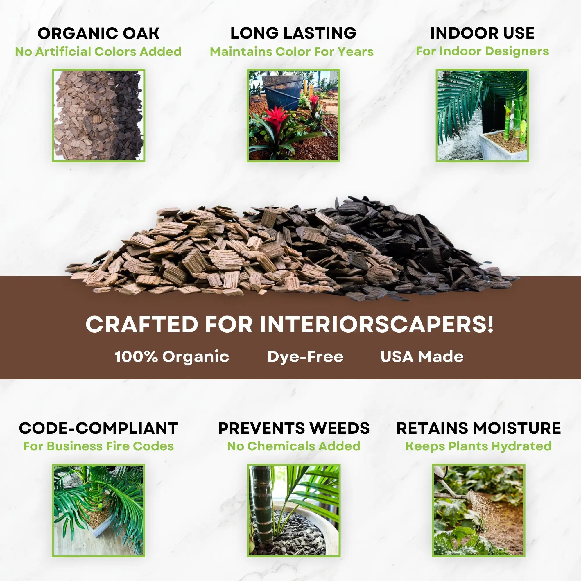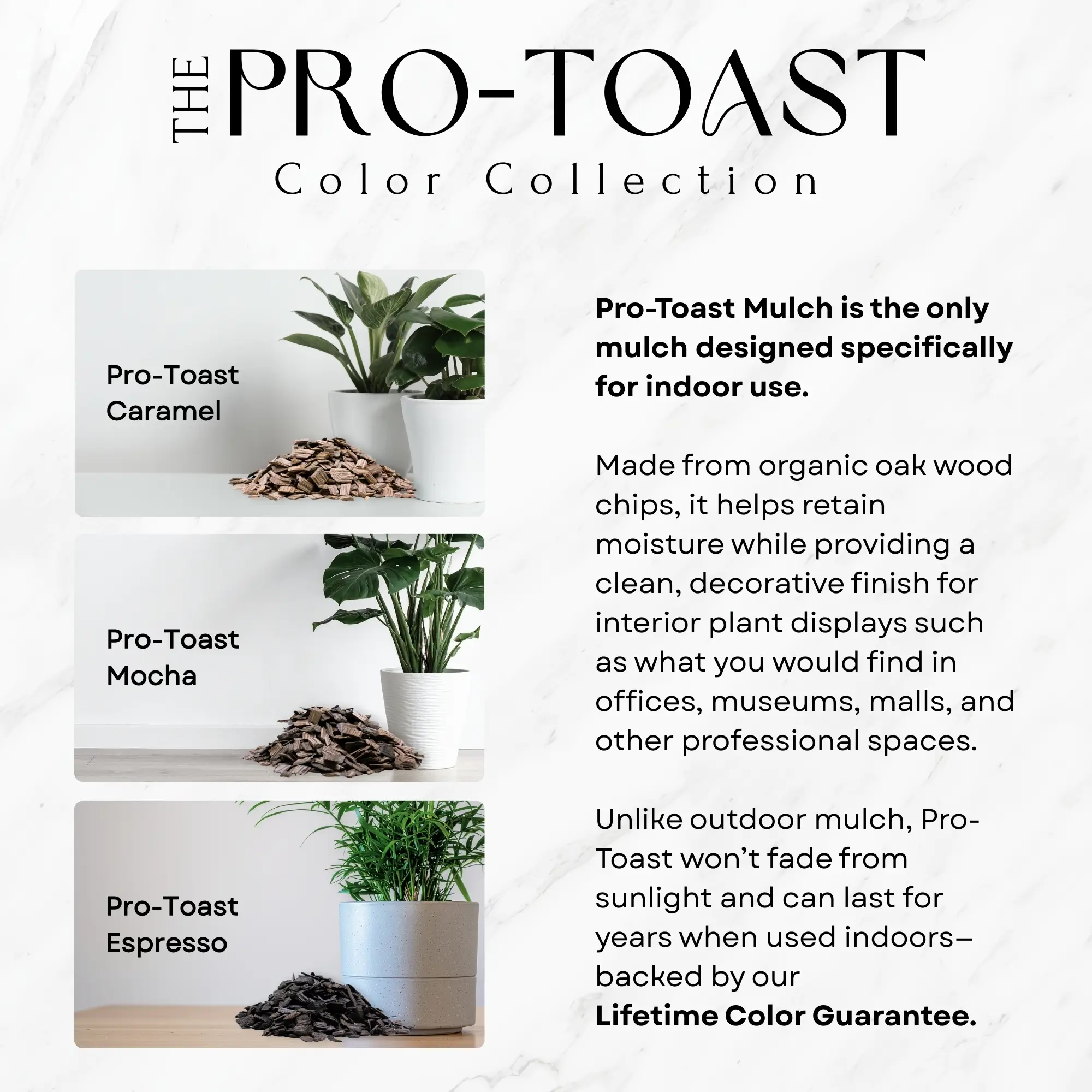 Our light brown mulch variation, Pro-Toast Caramel is a decorative indoor mulch made from natural oak wood, specifically designed for indoor plant displays. It displays a clean, professional look while providing multiple benefits for both interiorscapers and your indoor plants.